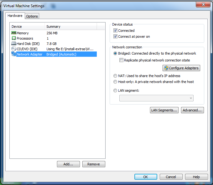 In the "Virtual Machine Settings" box, on the left side, click "Network Adapter".
