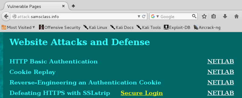Scroll down to the "Website Attacks and Defense" section, as shown below.