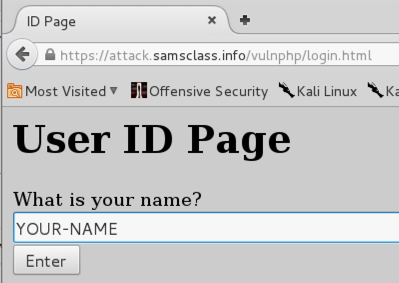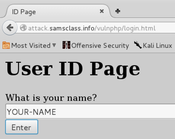 Type in your name and click the Enter button. A "Vulnerable Message Board" opens.