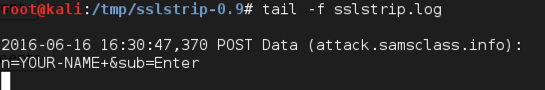 This starts sslstrip collecting data. It writes the data into a file named sslstrip.log. Leave this Terminal window open.