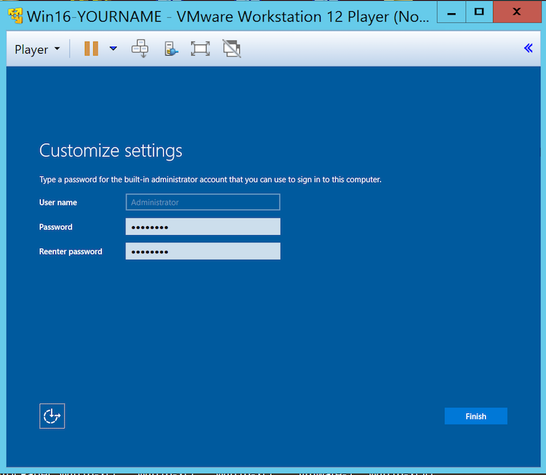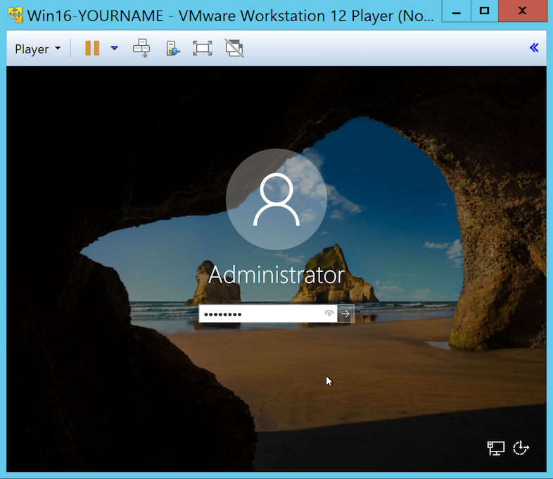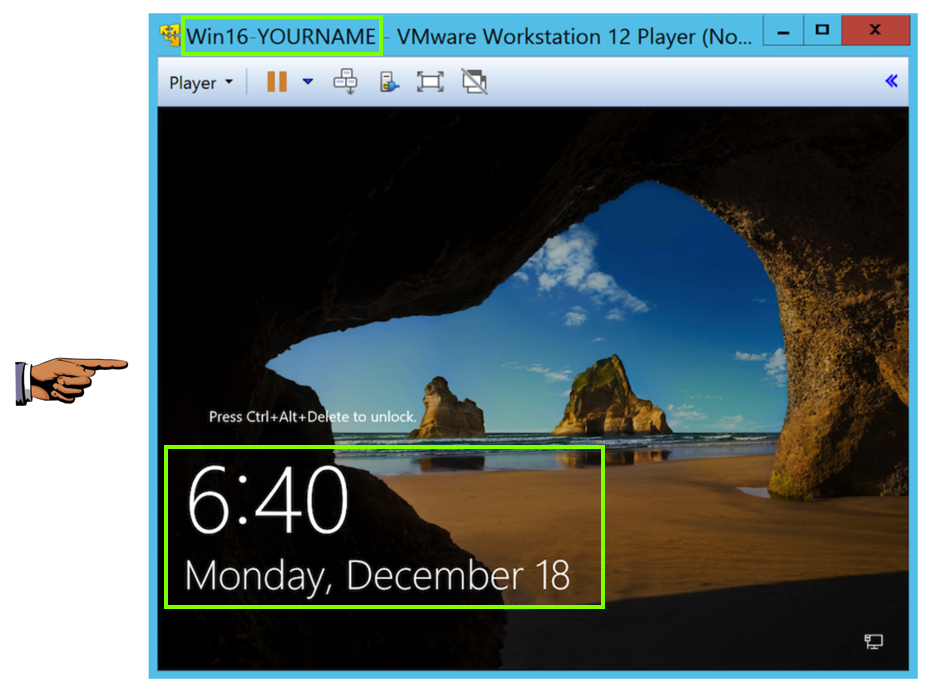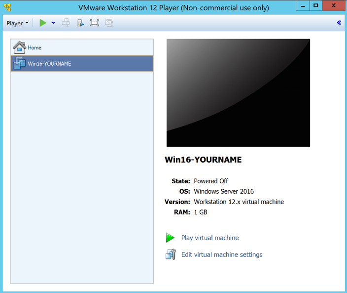 VMware Workstation Player now shows a "Win16-YOURNAME" item on the left side, as shown below.