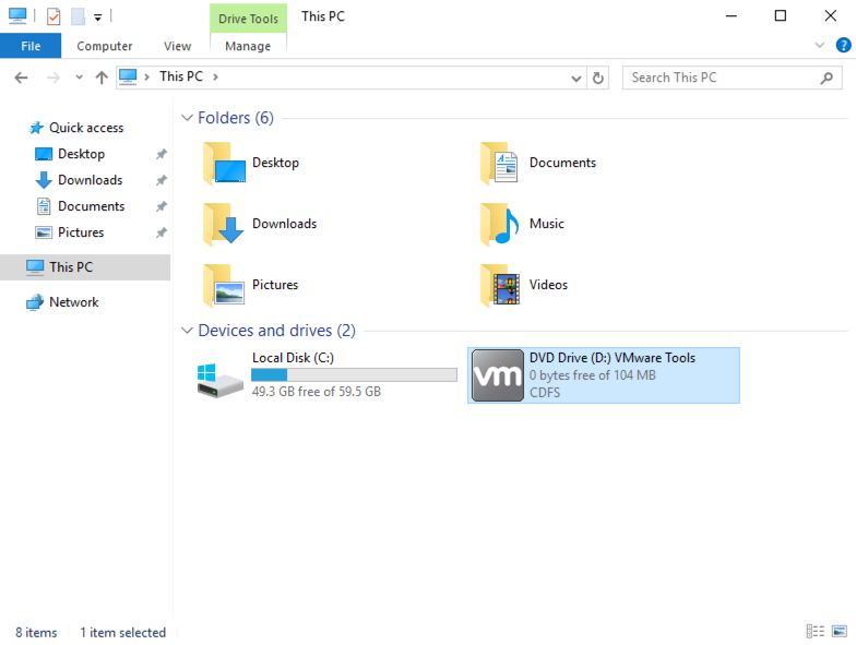 On the right side, double-click the DVD drive containing VMware Tools, as shown below.