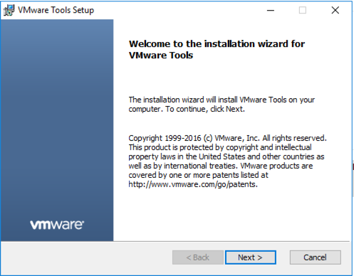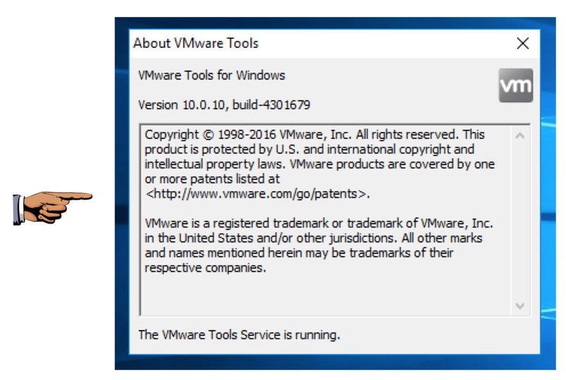 A box opens, showing that VMware Tools is installed and running, as shown below.