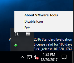 Right-click the little vm icon. In the context menu, click "About VMwate Tools", as shown below.