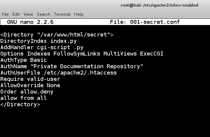 nano /etc/apache2/sites-enabled/001-secret.conf