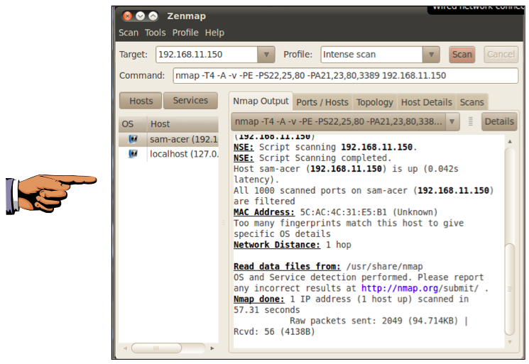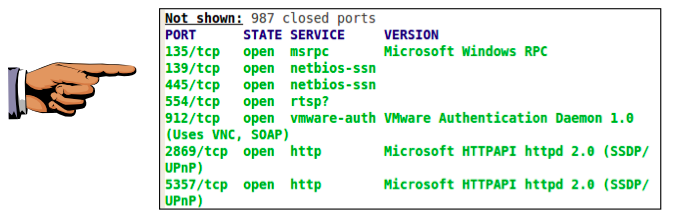 You should get results as shown below, showing open ports: 135, 139, 445, and probably several others.