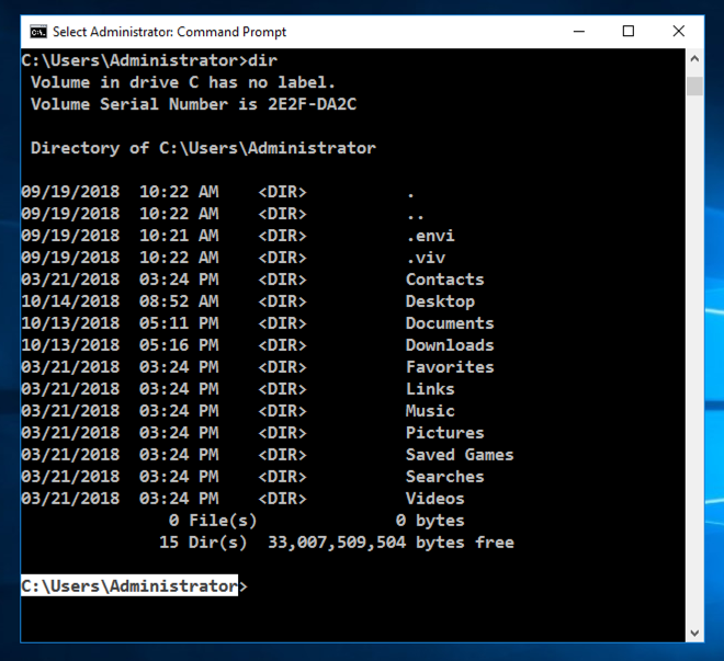 Your working directory is at its default starting value; your home directory, which is usually C:\Users\username. The working directory appears at the start of every prompt, before the > character, as highlighted in the image below.