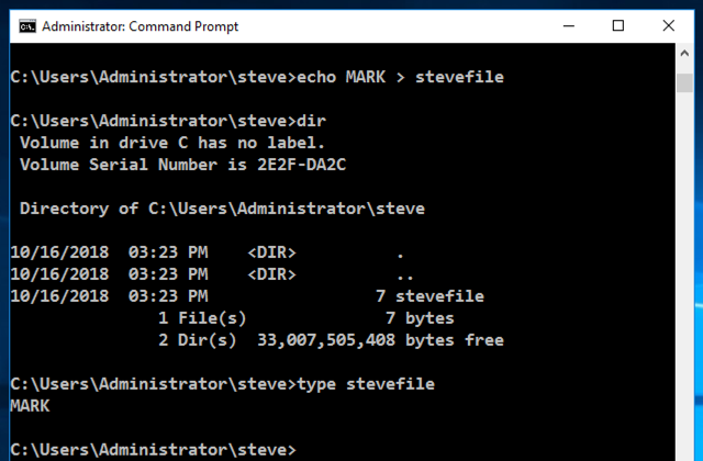 echo MARK > stevefile