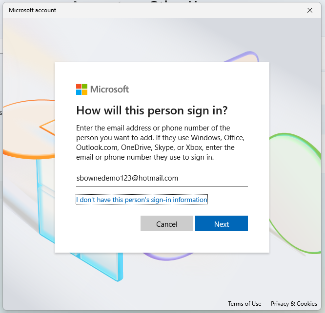 In the "How will this person sign in?" box, enter the cloud account address, as shown below.