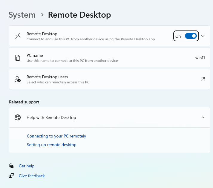 On the top right, click the slider to turn Remote Desktop On, as shown below.