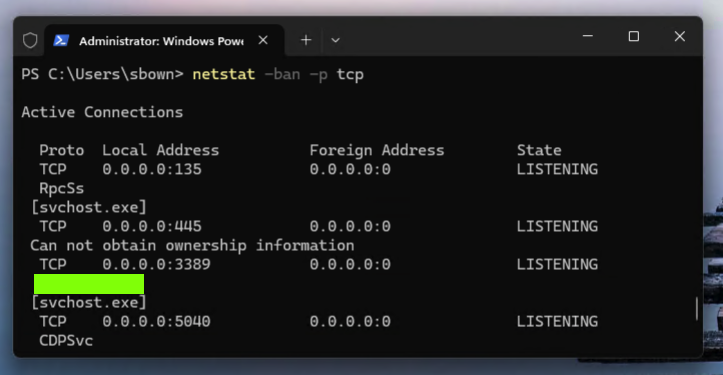 The flag is covered by a green rectangle in the image below.netstat -ban -p tcp