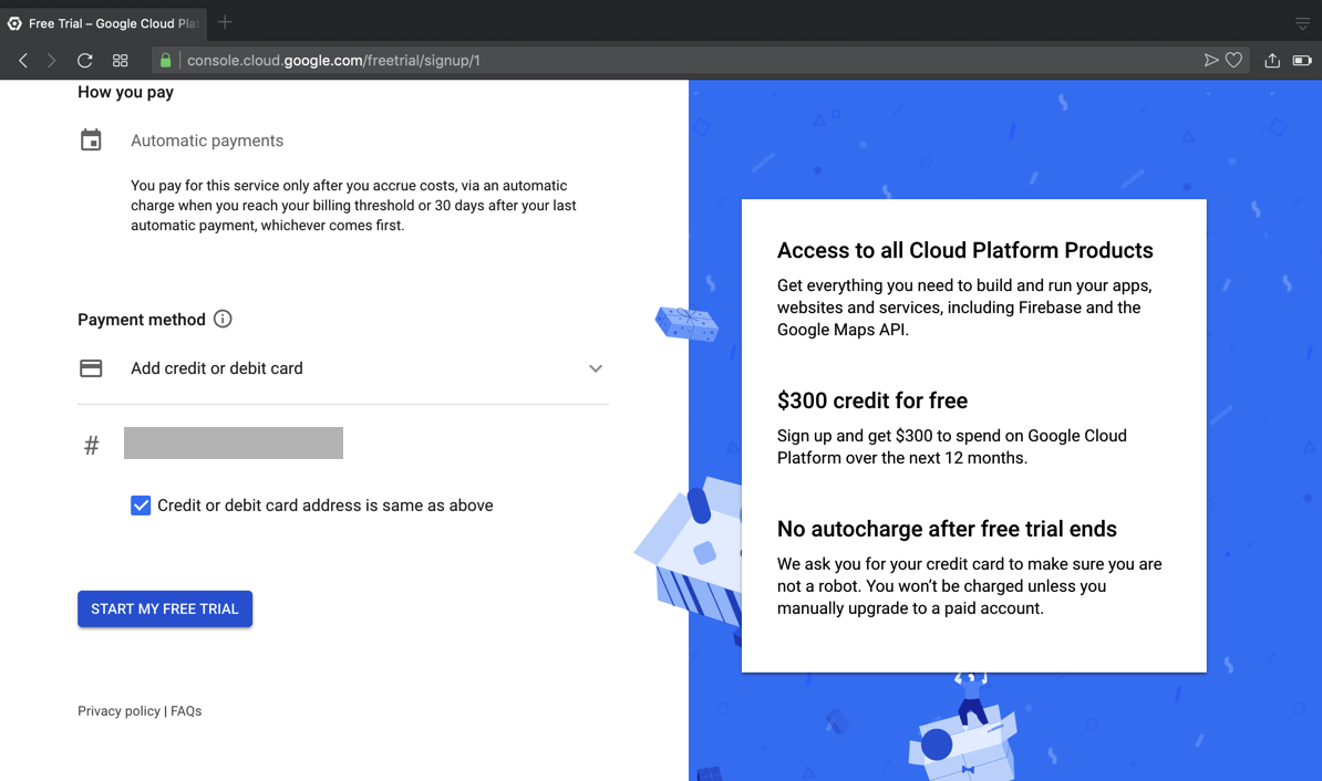 Fill in the next page. You must enter a credit card number, but it says you won't be charged without agreeing to that later.