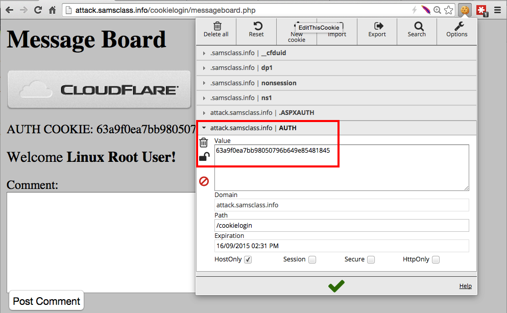 http://attackdirect.samsclass.info/cookielogin/messageboard.php