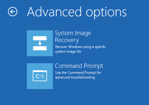 An "Advanced options" screen appears, as shown below. Click "Command Prompt".