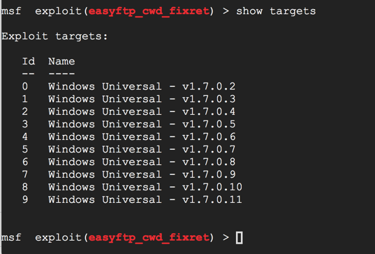 use exploit/windows/ftp/easyftp_cwd_fixret