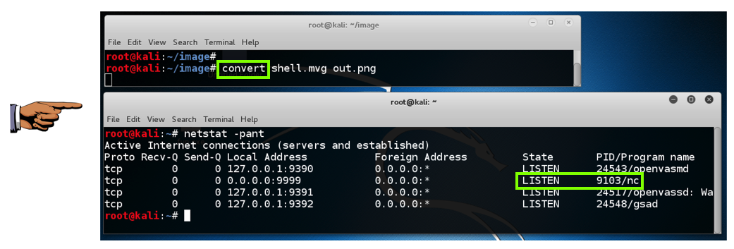Then create a malicious file named shell.mvg that opens a listening backdoor shell. You may find this document helpful: