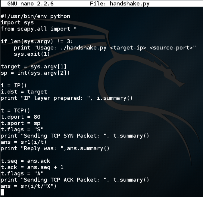print "Usage: ./handshake.py <target-ip> <source-port>"