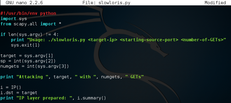 print "Usage: ./slowloris.py <target-ip> <starting-source-port> <number-of-GETs>"