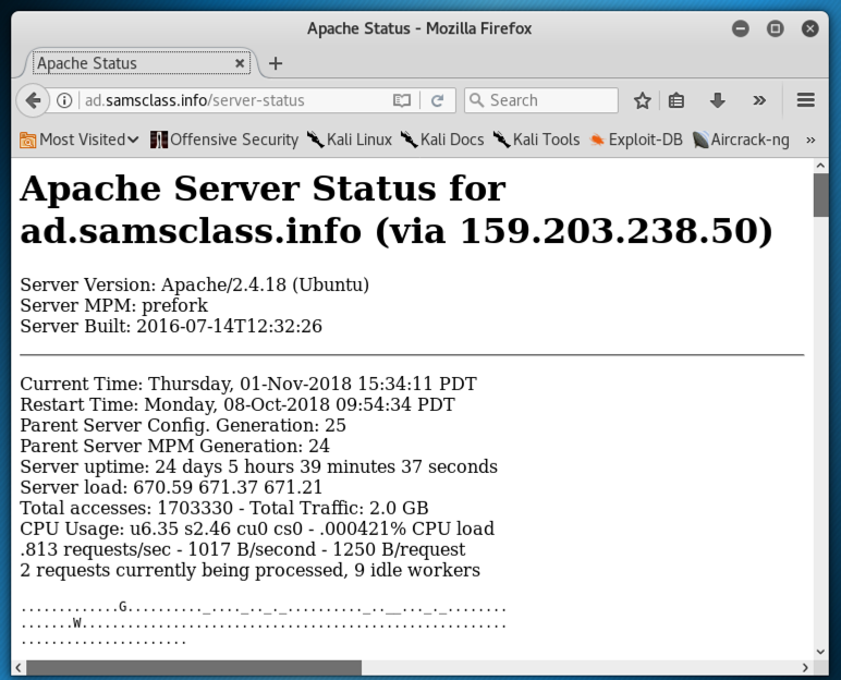 A list of the current connections to the server appears, as shown below. The grid at the bottom shows a few letters, but mostly periods, indicating available unused connections.