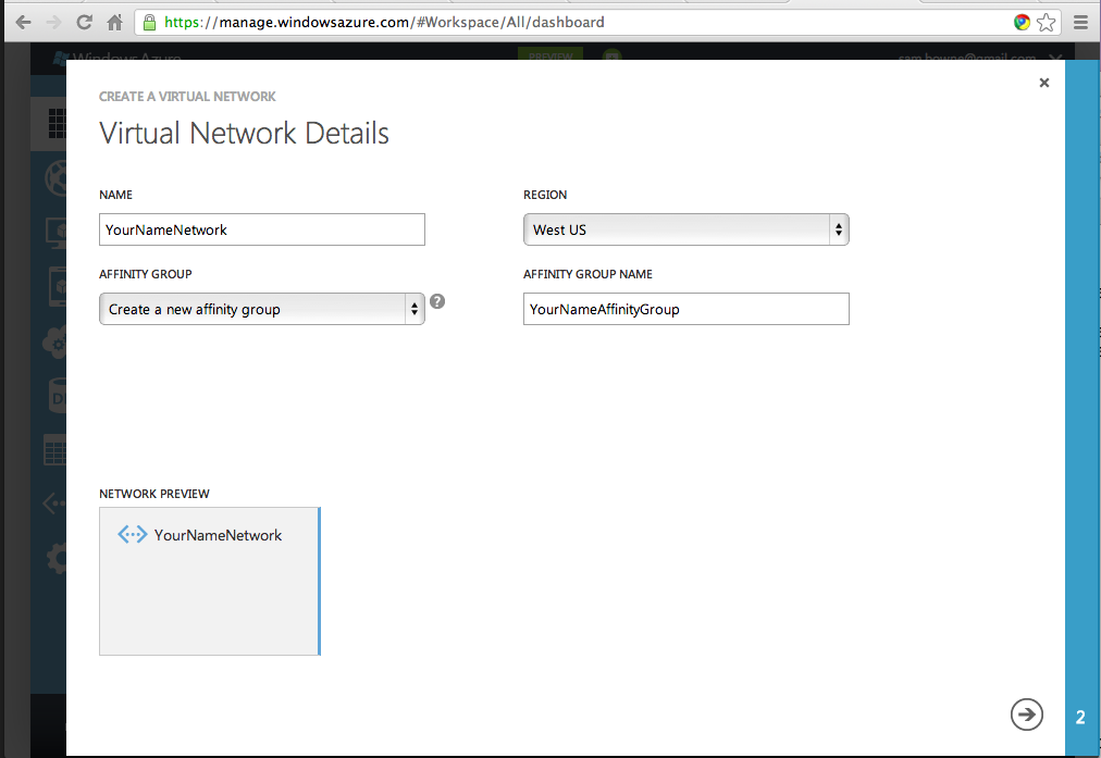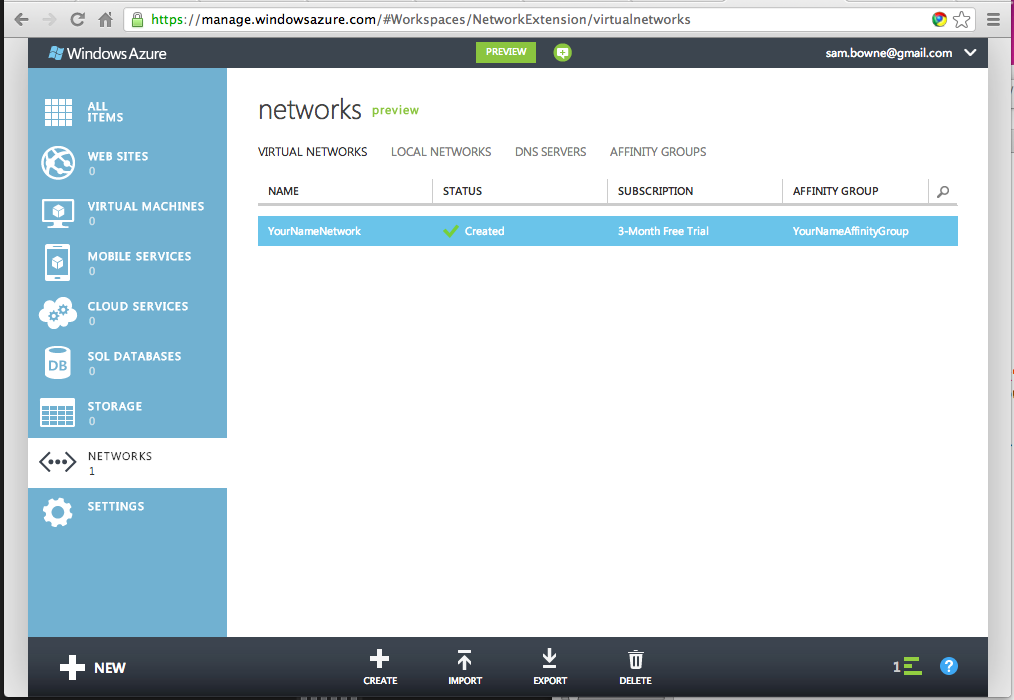 The Portal page appears, showing your new network, as shown below. Wait for the status to change from "Creating" to "Created". When I did it, it took about two minutes.