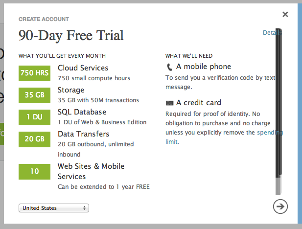 On the next page, the details of the free service are specified. Click the green "try it free" button.