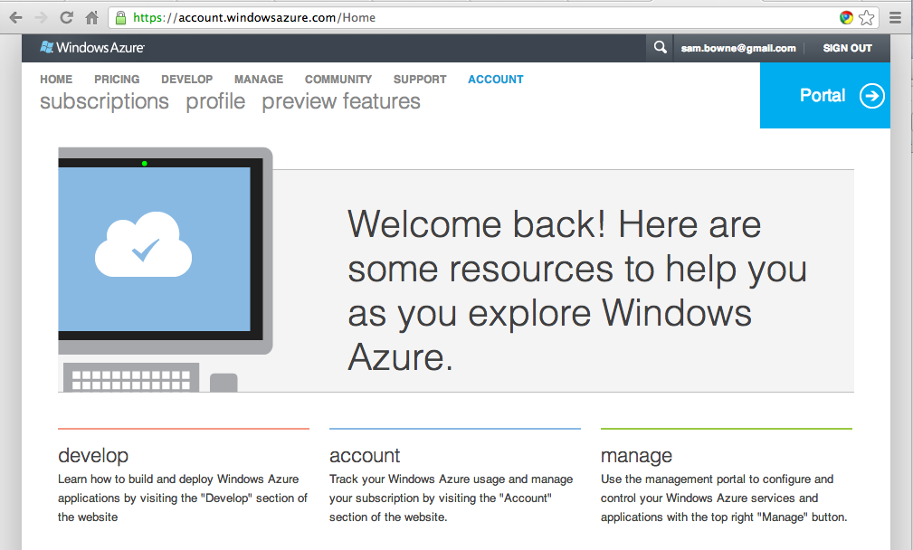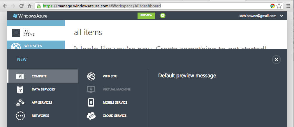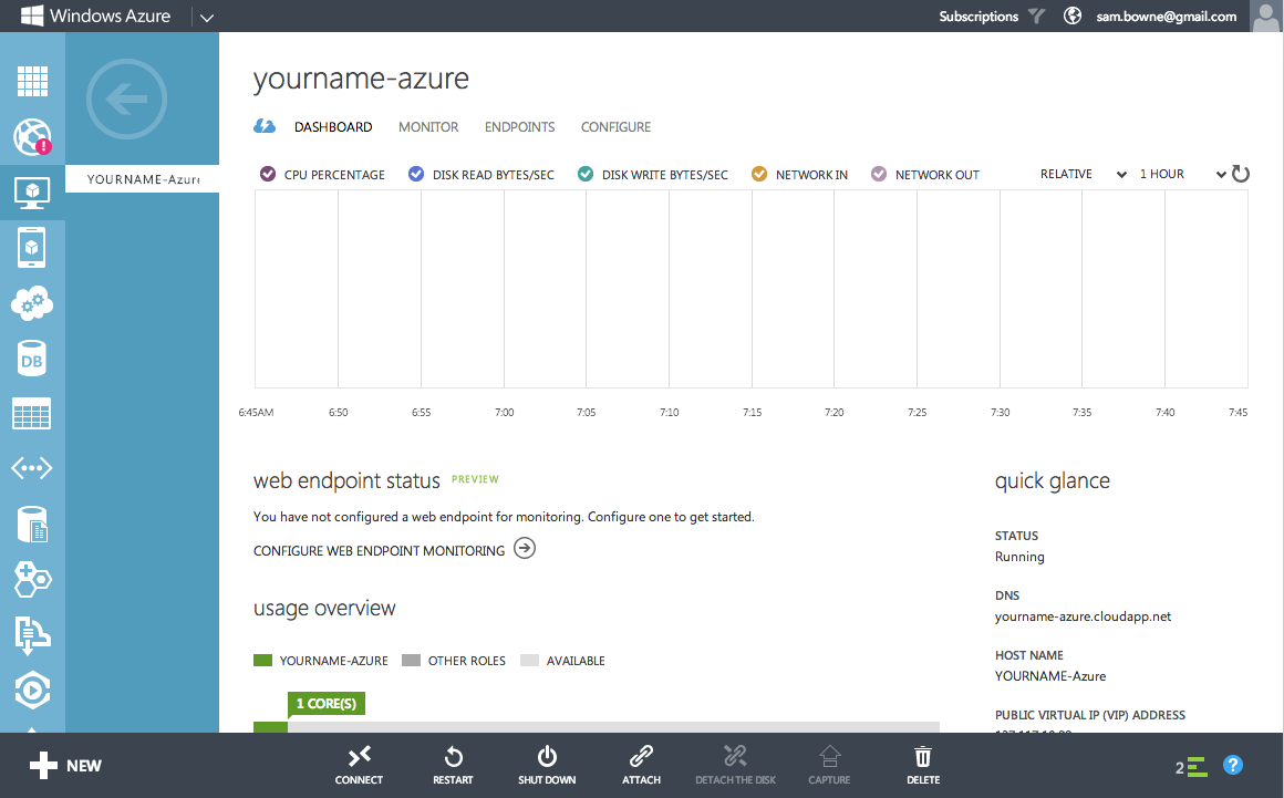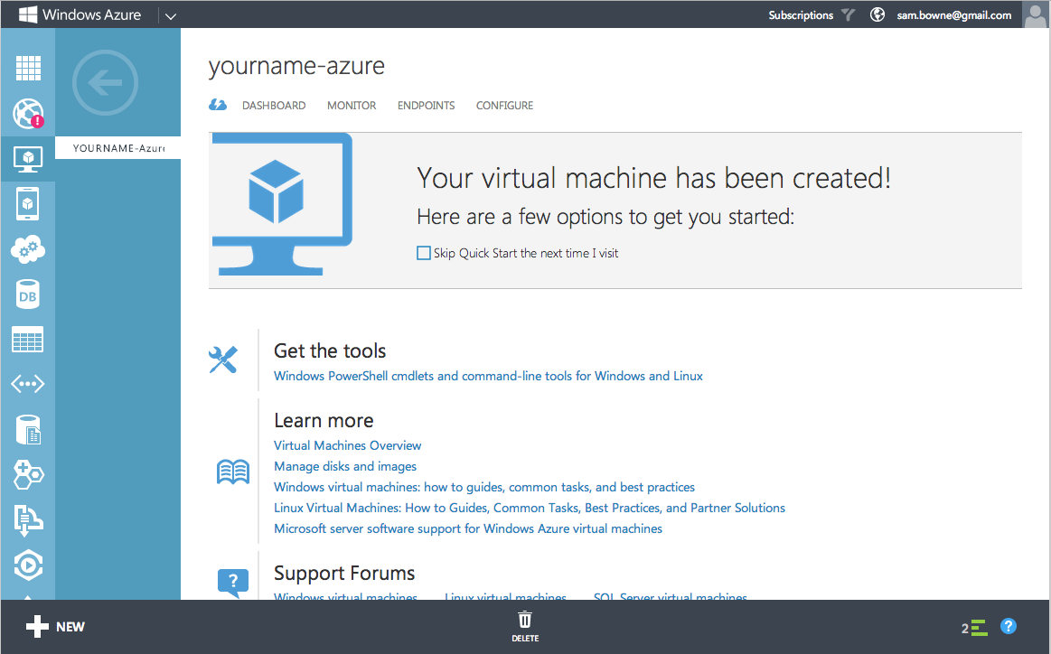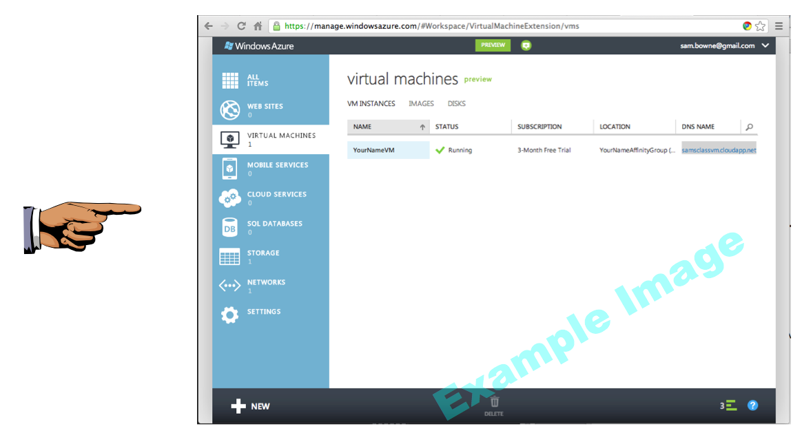 In the upper middle, click "CREATE A VIRTUAL MACHINE"