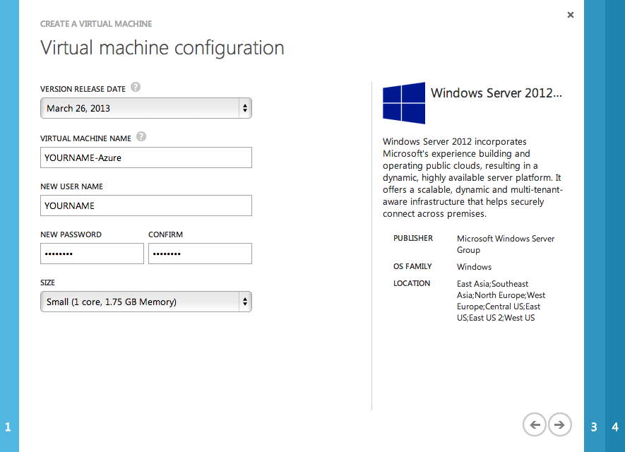 In the next page, fill in these items, as shown below, replacing "YourName" with your own name.
