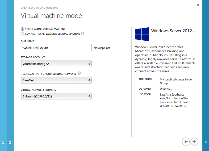 In the "Virtual machine Mode" page, enter a "DNS NAME" of