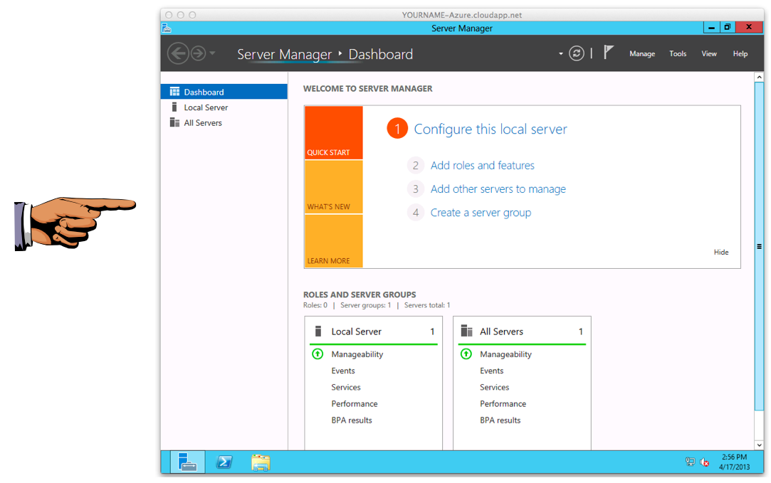 Wait a couple of minutes, and "Server Manager" will open, as shown below: