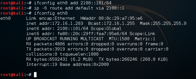 In the Sender machine, execute these commands to assign the IPv6 destination address,