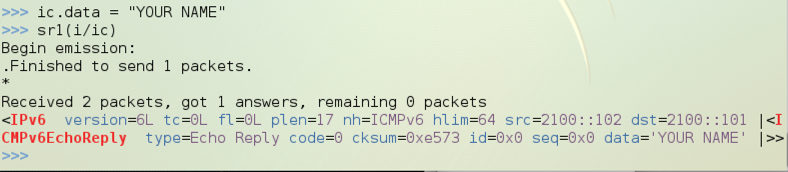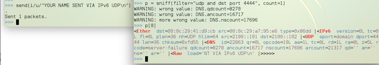 send(i/u/"YOUR NAME SENT VIA IPv6 UDP\n")