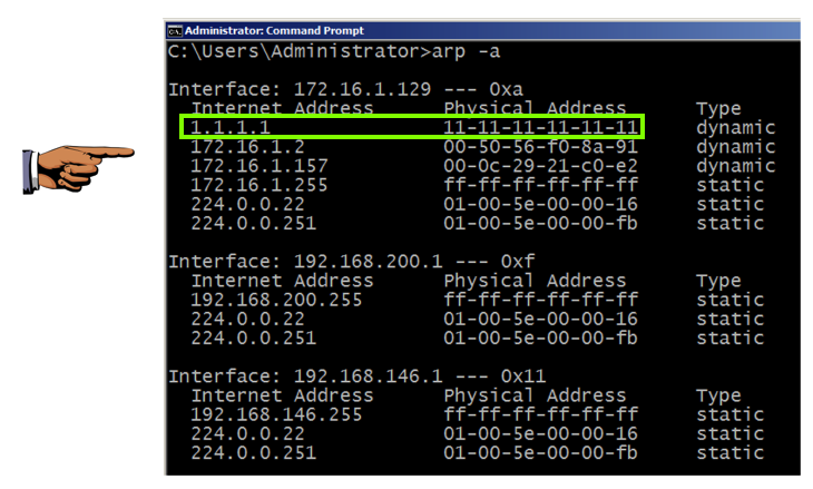 On the Windows machine, open a Command Prompt window and execute the IPCONFIG command.