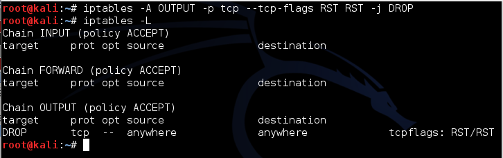 iptables -A OUTPUT -p tcp --tcp-flags RST RST -j DROP