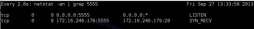 Look at your Target machine. It should now show a connection in the SYN-RECV state again: