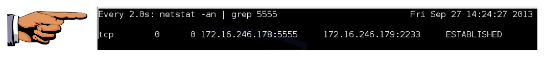 Wait for 60 seconds. You should see the connection time out--it will vanish from the netstat list.