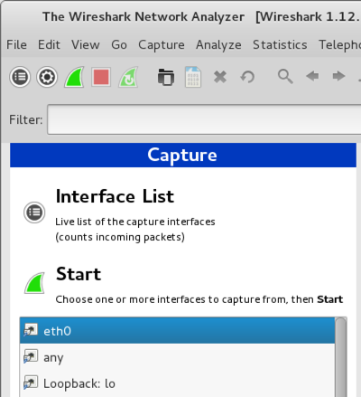 Press Enter to close them. In the Wireshark window, click eth0 to highlight it, as shown below.