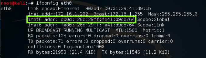 You should see an automatically configured IPv6 address starting with the d00d:: prefix, as shown below on this page: