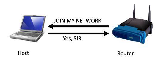 However, in IPv6 the most common method is through Router Advertisements. This is a "push" process: the router announces its presence with a special packet that is multicast to all nodes, and they then join the network, as shown below.