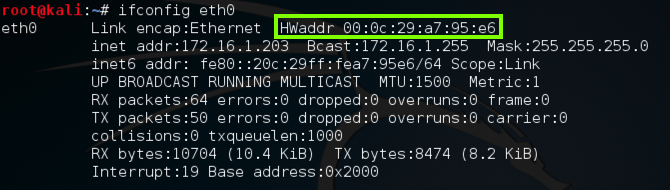 Find the HWaddr value, which is highlighted in the figure below on this page. Record this value--you will need it later.