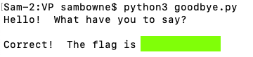 Connect to the ad.samsclass.info server on port 10202.Send it the string "Goodbye".