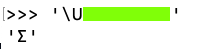 Find the eight-character Unicode code point for a capital Sigma, covered by a green box in the image below.