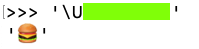 Find the eight-character Unicode code point for a hamburger, covered by a green box in the image below.