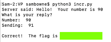 Connect to the ad.samsclass.info server on port 10203.It sends you a number. Add one to that number and send it to the server.