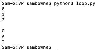 Notice that a colon starts a loop, and that every statement in a loop must be indented.