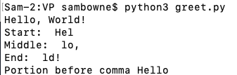 Examine the output to make sure you understand how to cut out portions of a string, and how to find substrings within a string.