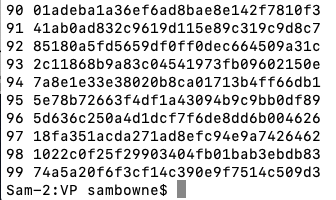 Create a program that calculates the NTLM hashes for all two-digit passwords from 00 to 99, as shown below.Find the hash containing baad. That complete hash value is the flag.