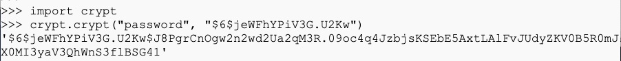 crypt.crypt("password", "$6$jeWFhYPiV3G.U2Kw")