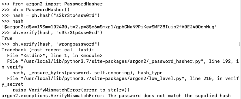 ph.verify(hash, "wrongpassword")