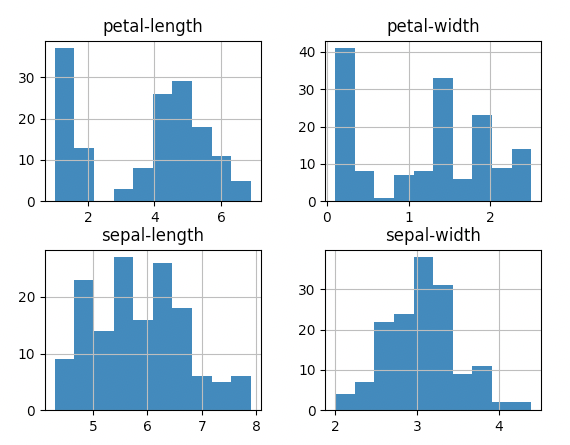 names = ['sepal-length', 'sepal-width', 'petal-length', 'petal-width', 'class']
