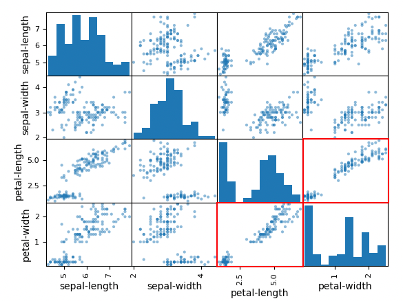 This means there is a strong correlation between "petal-length" and "petal-width". That they both contain the same information--measuring one of them is enough to predict the other.
